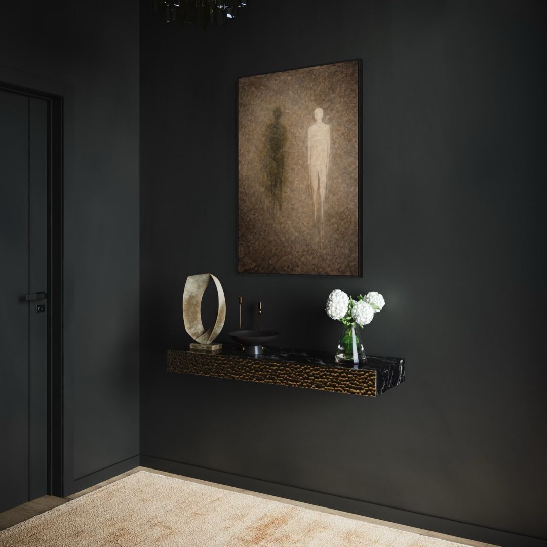 Kompozycja opiera się na relacji między formą a przestrzenią. Pomiędzy nimi pojawia się dystans, pauza, napięcie. To właśnie te przerwy nadają pracy charakter i sprawiają, że odbiór nie zamyka się w jednym spojrzeniu.