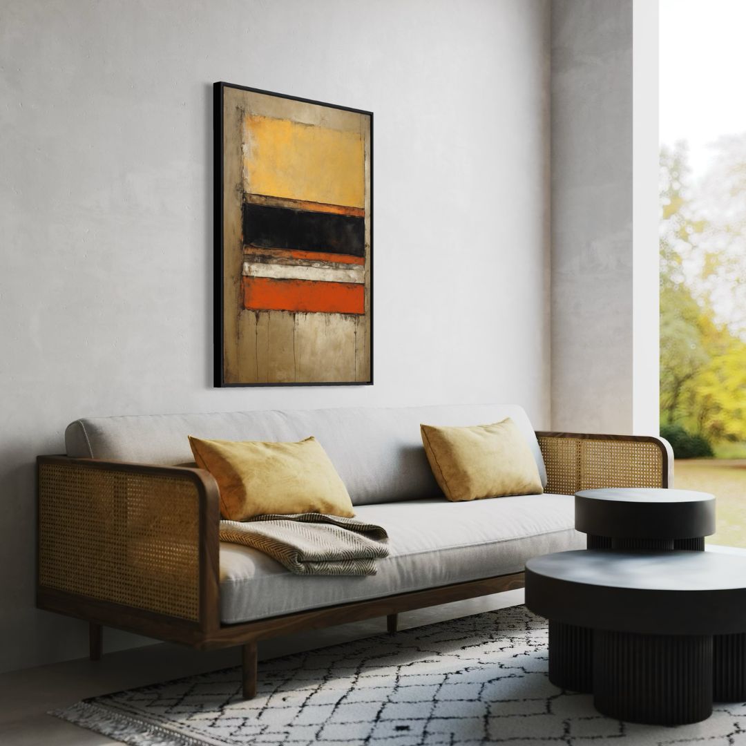 Kompozycja opiera się na relacji pomiędzy poszczególnymi warstwami a przestrzenią, w której funkcjonują. Pomiędzy nimi pojawia się ciężar, wyciszenie i stabilność. To te zależności decydują o charakterze pracy i sprawiają, że odbiór nie kończy się na pierwszym spojrzeniu.
