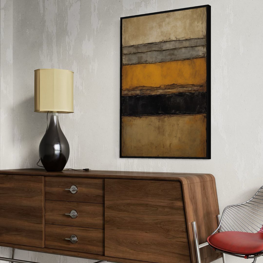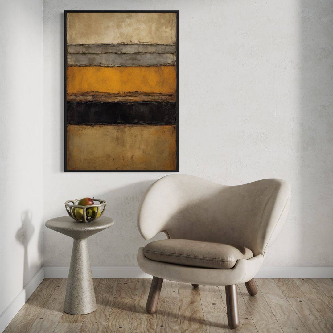 Kompozycja opiera się na relacji pomiędzy poszczególnymi warstwami a przestrzenią, w której funkcjonują. Pomiędzy nimi pojawia się ciężar, wyciszenie i stabilność. To te zależności decydują o charakterze pracy i sprawiają, że odbiór nie kończy się na pierwszym spojrzeniu.