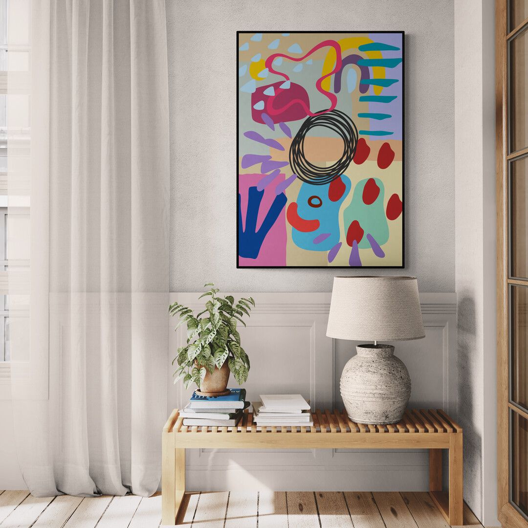 Playful Abstract opiera się na ruchu, kolor i forma pojawiają się bez schematu, ale nie są przypadkowe. To kontrolowana swoboda, w której napięcie buduje się przez kontrast i rytm.