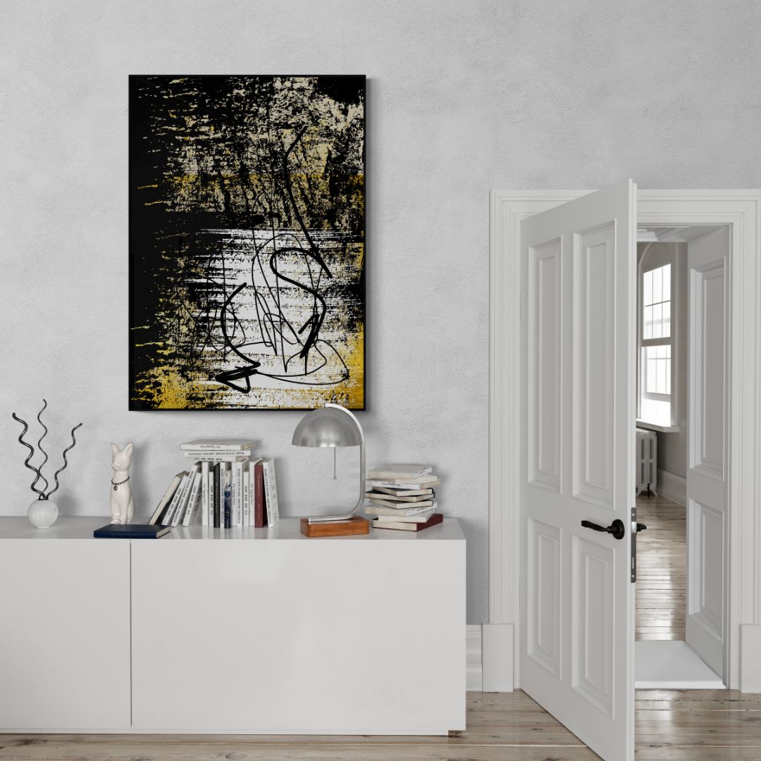 Może funkcjonować jako pojedynczy, mocny akcent na ścianie lub jako część większej, spójnej kompozycji z innymi pracami z serii Raw Abstract.