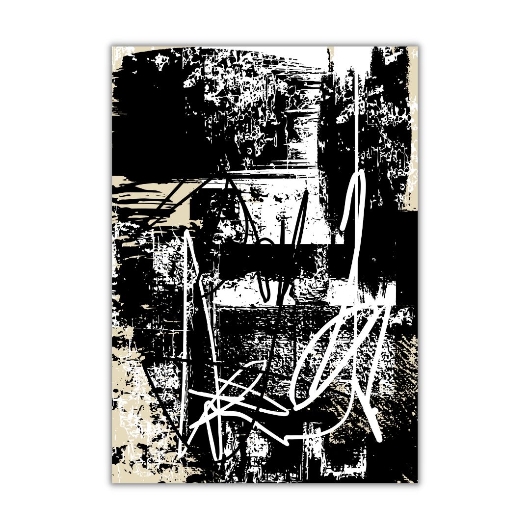 Plakat artystyczny z serii Raw Abstract to intensywna forma wizualna oparta na kontraście, geście i strukturze. Praca nie opowiada historii wprost — działa poprzez napięcie, rytm i fizyczność śladu.