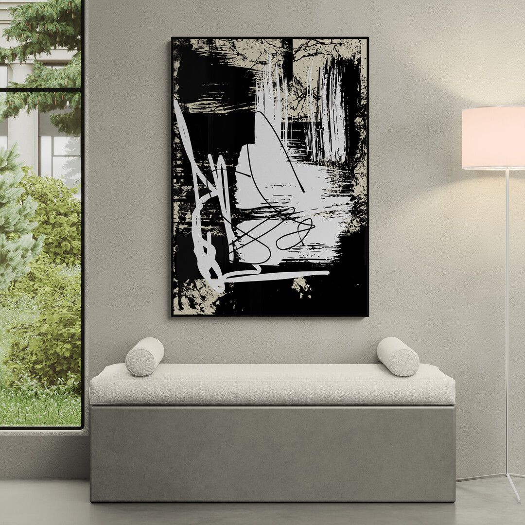 Plakat artystyczny z serii Raw Abstract to intensywna forma wizualna oparta na kontraście, geście i strukturze. Praca nie opowiada historii wprost — działa poprzez napięcie, rytm i fizyczność śladu.