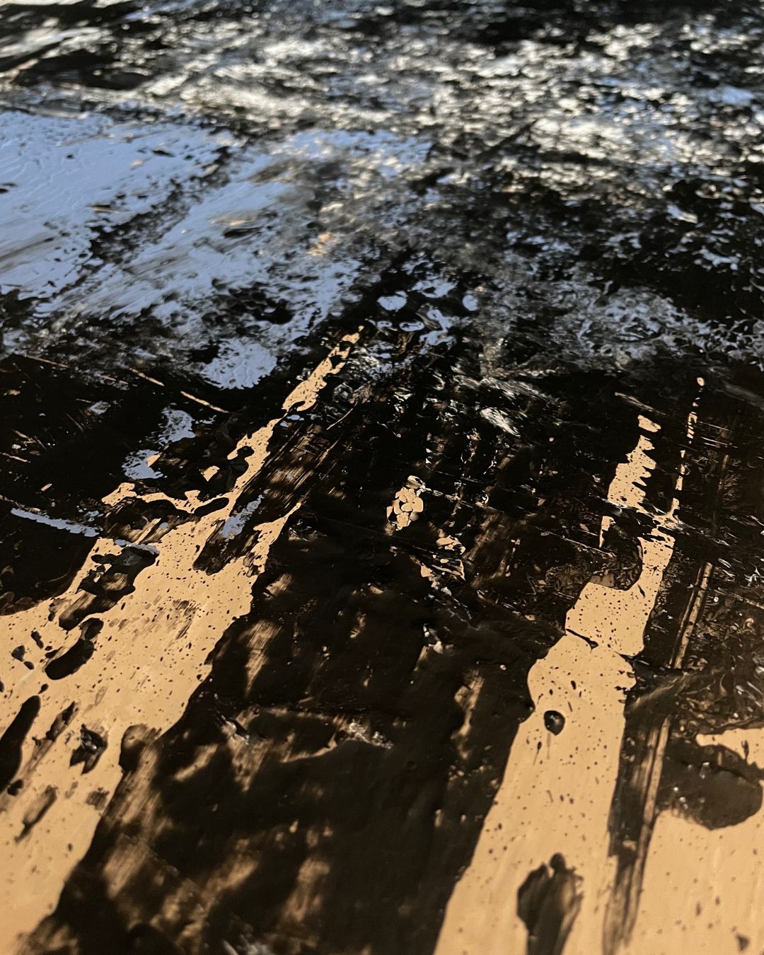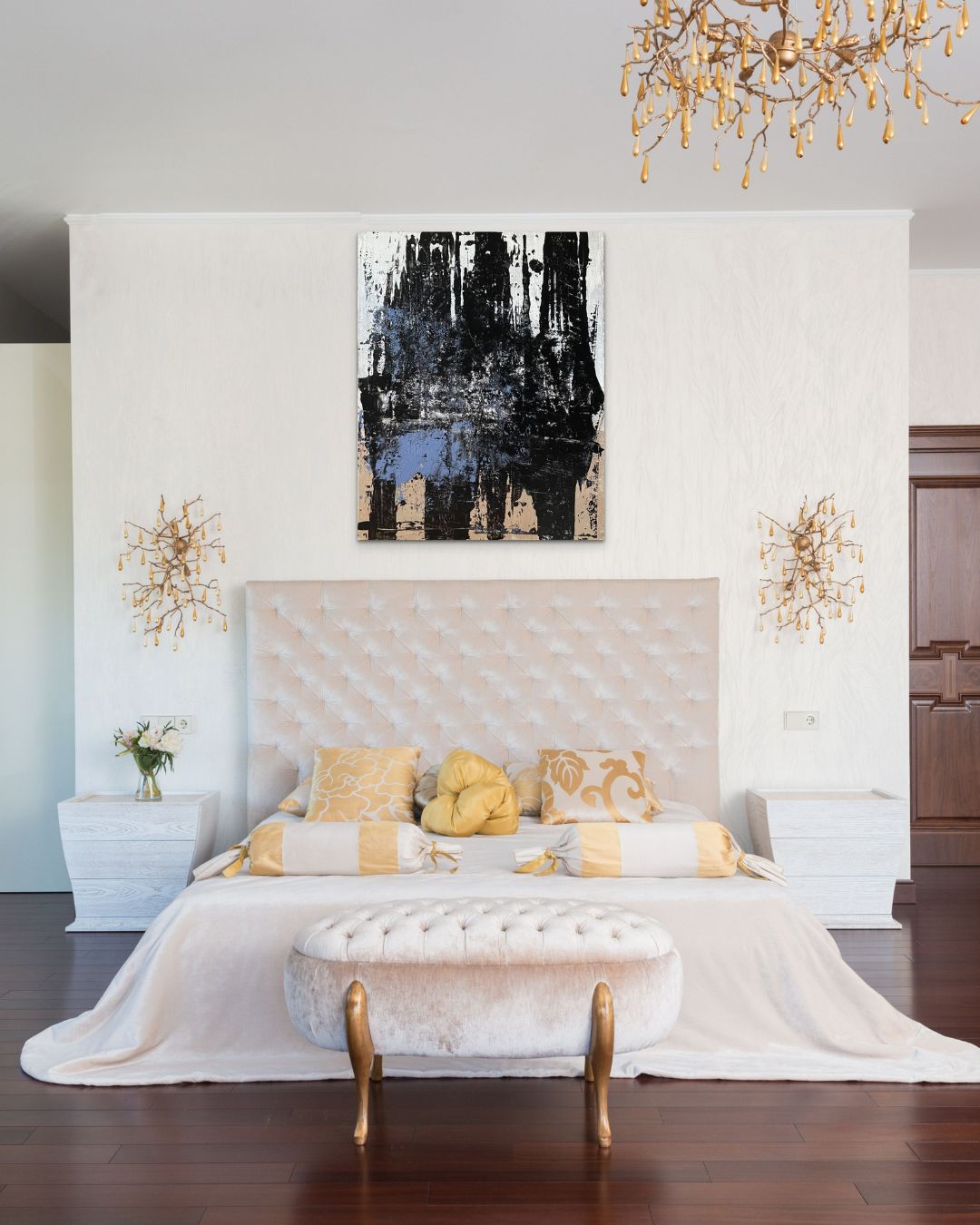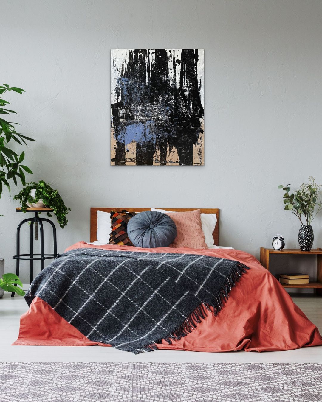 Matowa czerń, biel i niebieskie kolory przyczyniają się do jego atrakcyjności. Świetnie prezentuje się we wnętrzach. Obraz jest idealnym dodatkiem do każdego współczesnego domu.