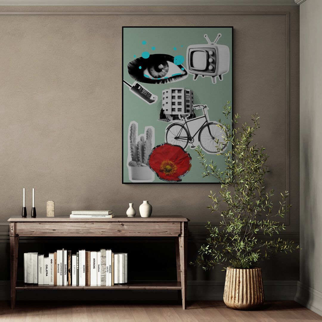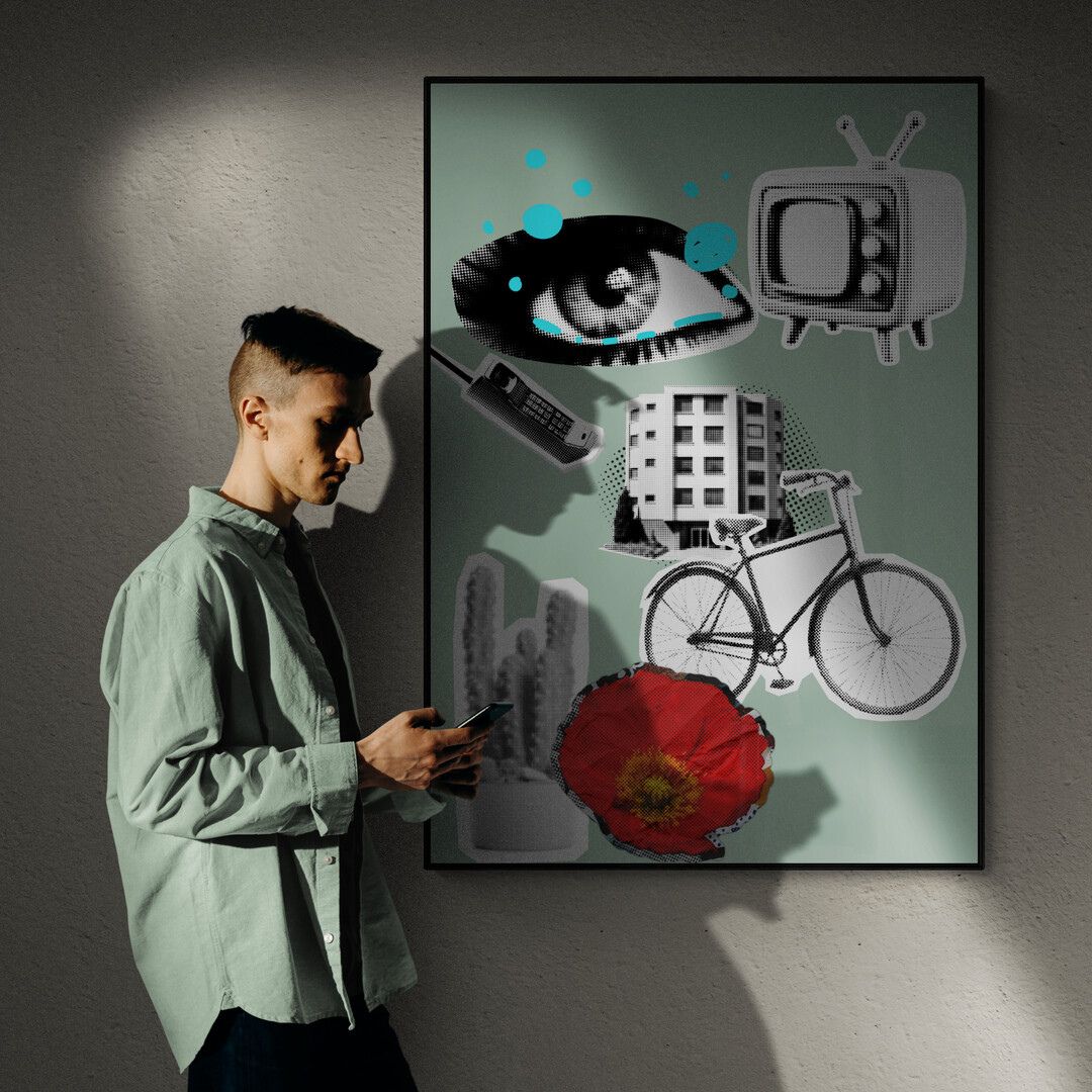 Vision Abstract opiera się na napięciu, między obrazem a znaczeniem, między tym, co oczywiste, a tym, co wymyka się interpretacji. Kolaż, skrót, kontrast – wszystko działa jednocześnie, bez potrzeby wyjaśniania.