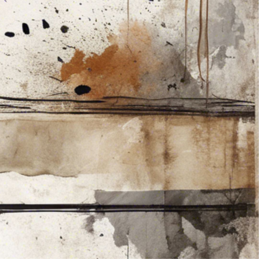 Ten plakat z serii Wabi Sabi Abstract nie próbuje robić wrażenia. Zostaje przez to, czego w nim brakuje. Rozmyte formy, niedomknięte linie, ślady rozpadu, kompozycja, która nie daje się zamknąć w jednej interpretacji.